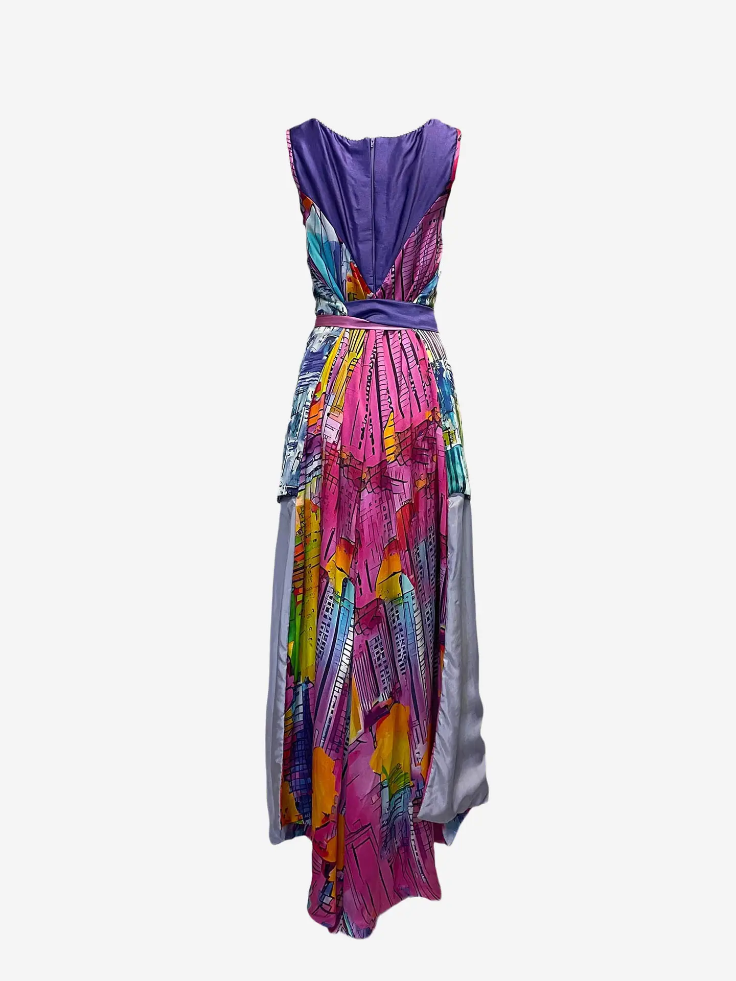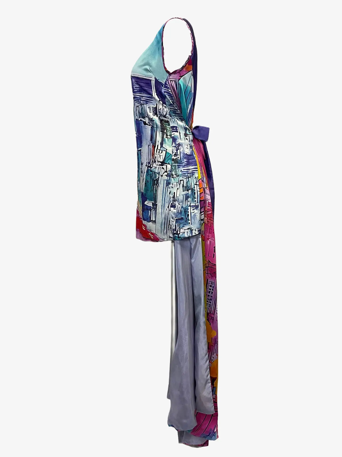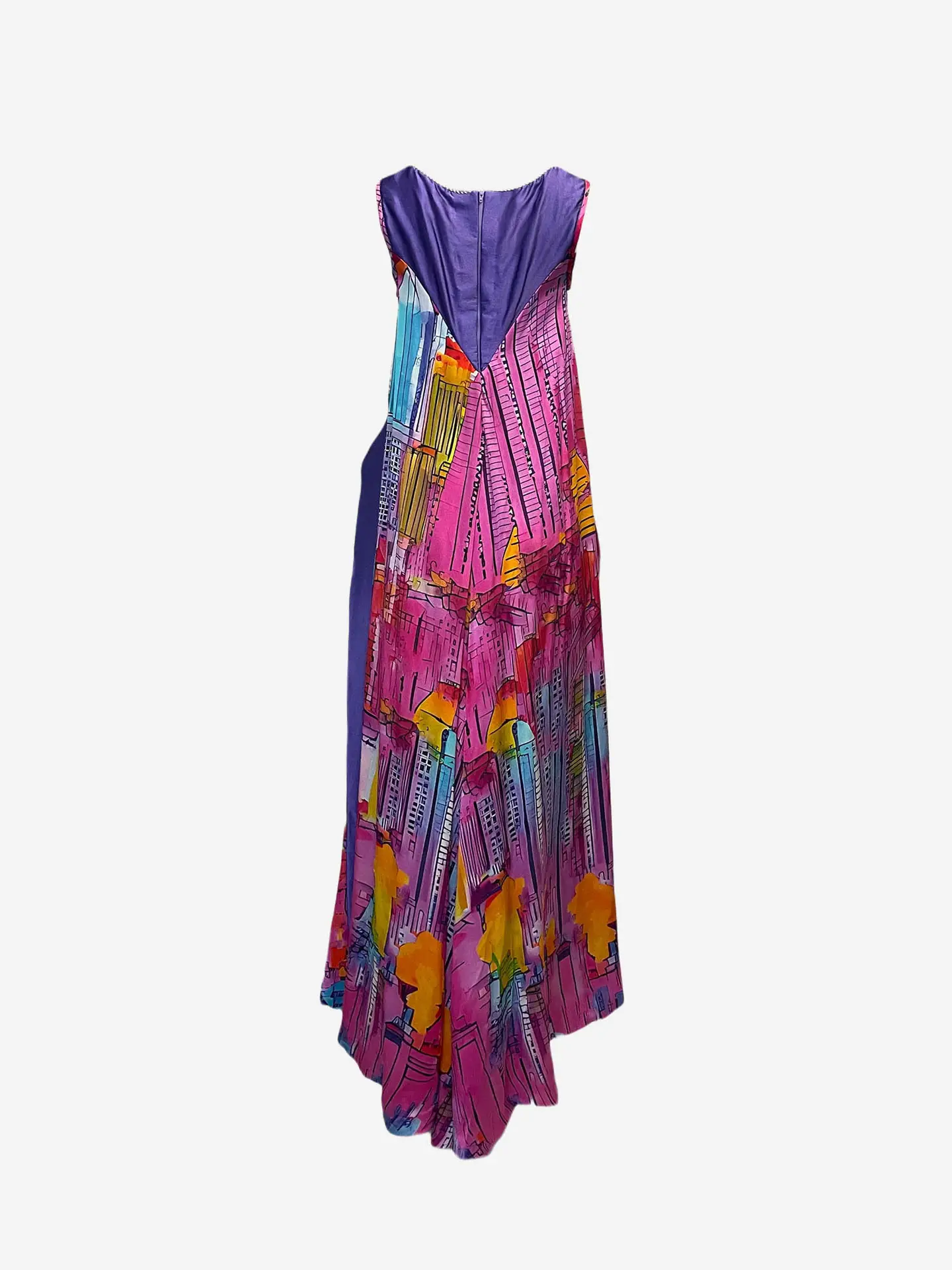 Printed silk dress, crafted from 100% silk charmeuse. Featuring a rare artistic print by Lily Marotto and Stephen Matthew Wisniew.