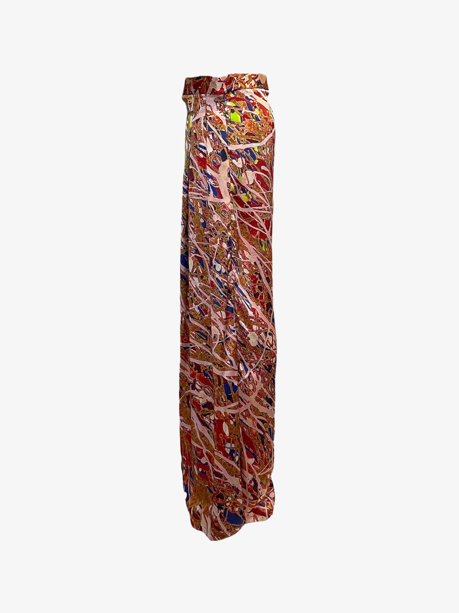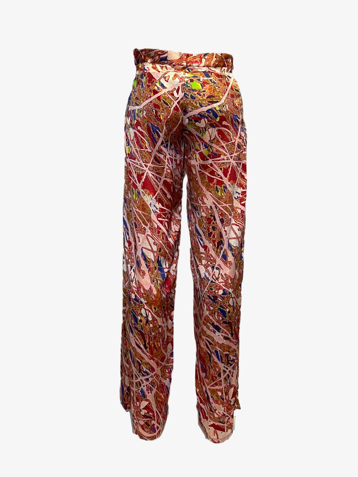 Custom-printed pleated wide pants, made from 100% silk charmeuse. Featuring a rare artistic print and finished with elegant French seam finishes.