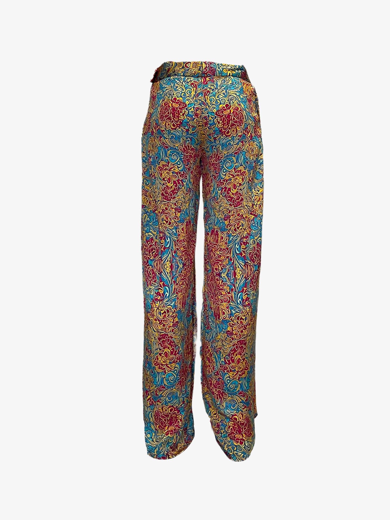 Custom-printed pleated wide pants, made from 100% silk charmeuse. Featuring a rare artistic print and finished with elegant French seam finishes.