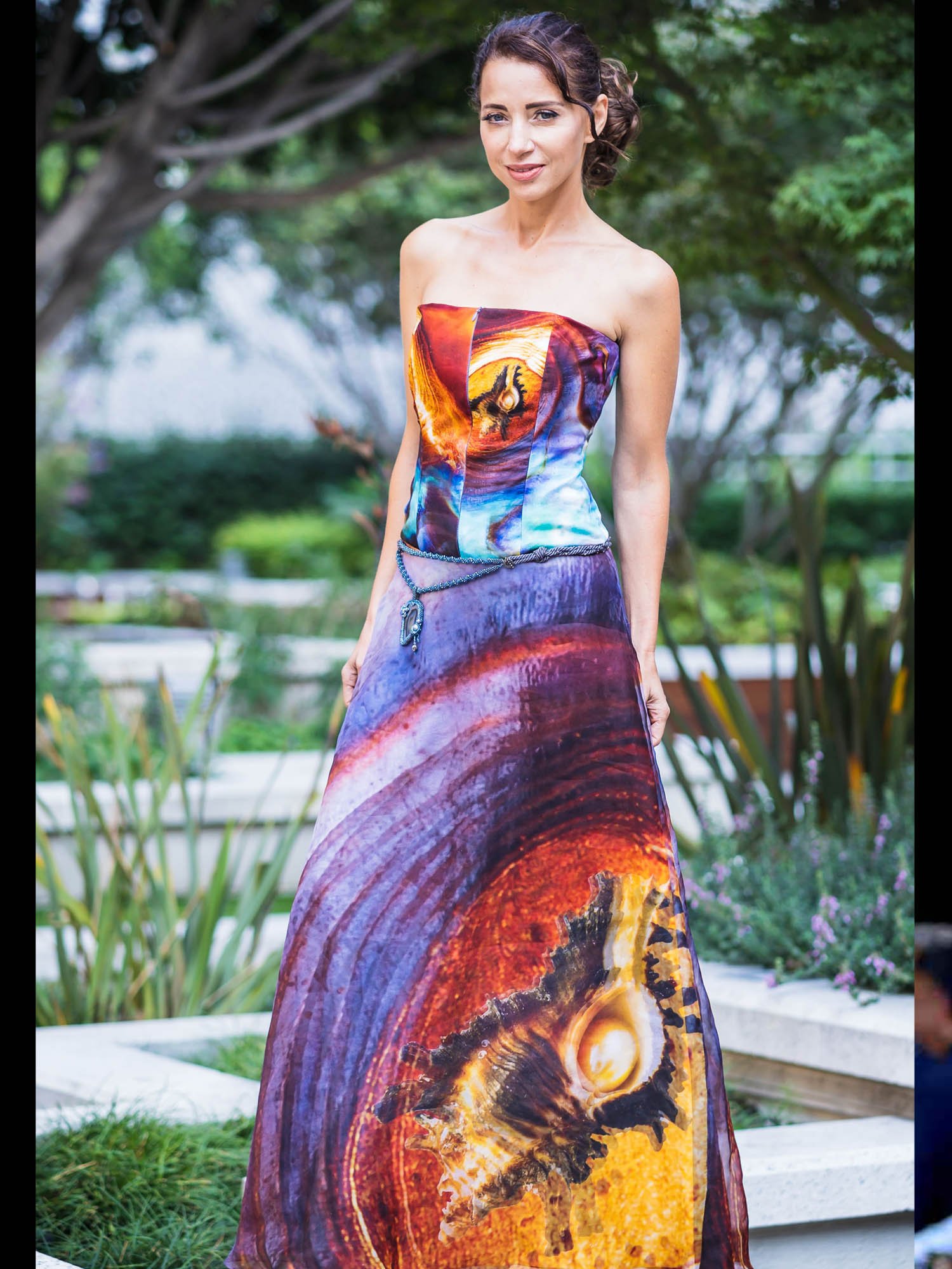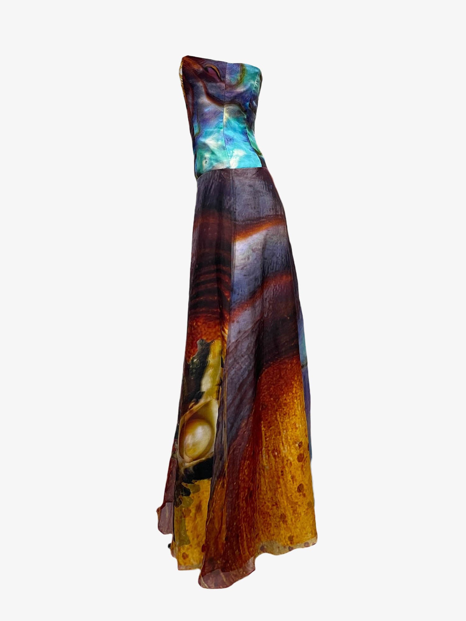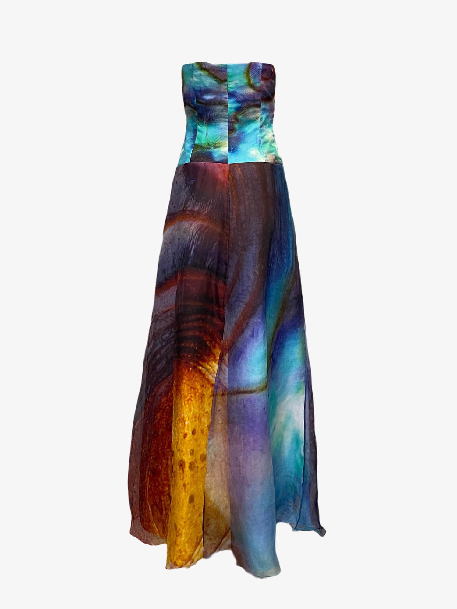 Printed silk organza cotton twill corset dress featuring a signature 3D technique print.