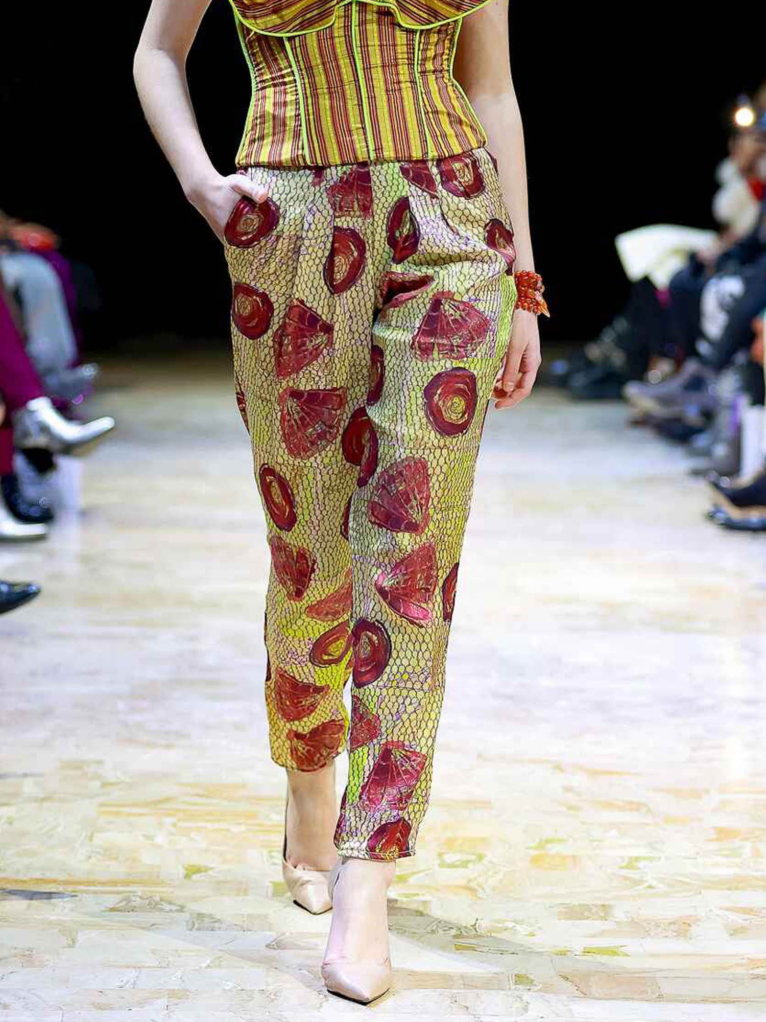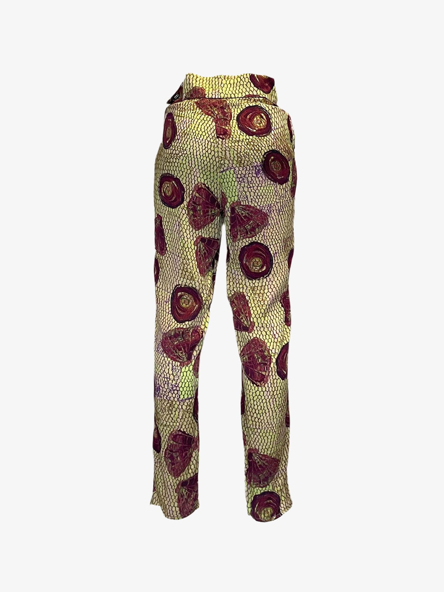 Custom-printed pleated narrow pants, made from 100% silk charmeuse. Featuring a rare artistic print and finished with elegant French seam finishes.