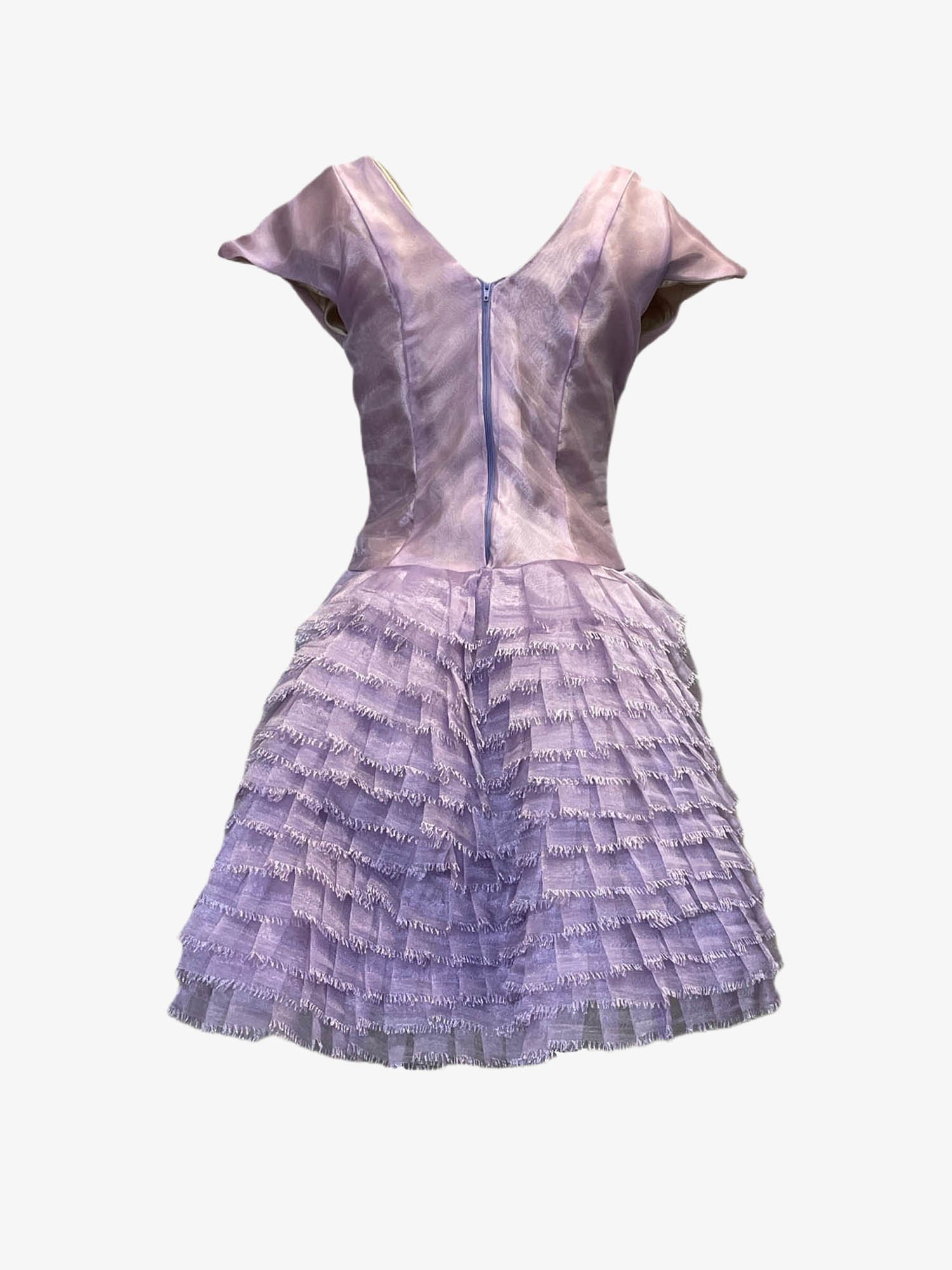 Organza ruffled dress, crafted from 100% organza and lined with 100% crepe satin.